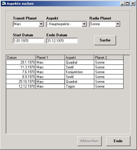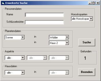 Suchmöglichkeiten in der Horoskopdatenbank |